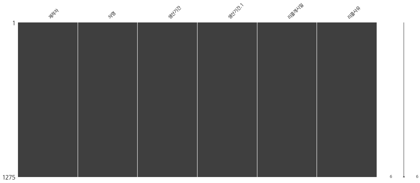 df = df.drop(columns=['생산기간', '생산기간1']).rename(columns={'차명': 'model', '리콜사유': 'cause'})