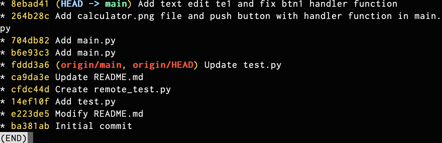 위와 같이 커밋 내용이 한 줄로 정리되어 출력된다. 커밋이 많을 때 유용한 옵션이다.