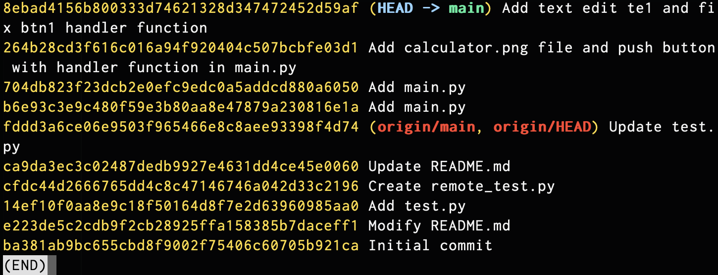 참고로 --oneline 옵션을 사용하면 커밋 아이디가 일곱번째 값까지만 출력된다.